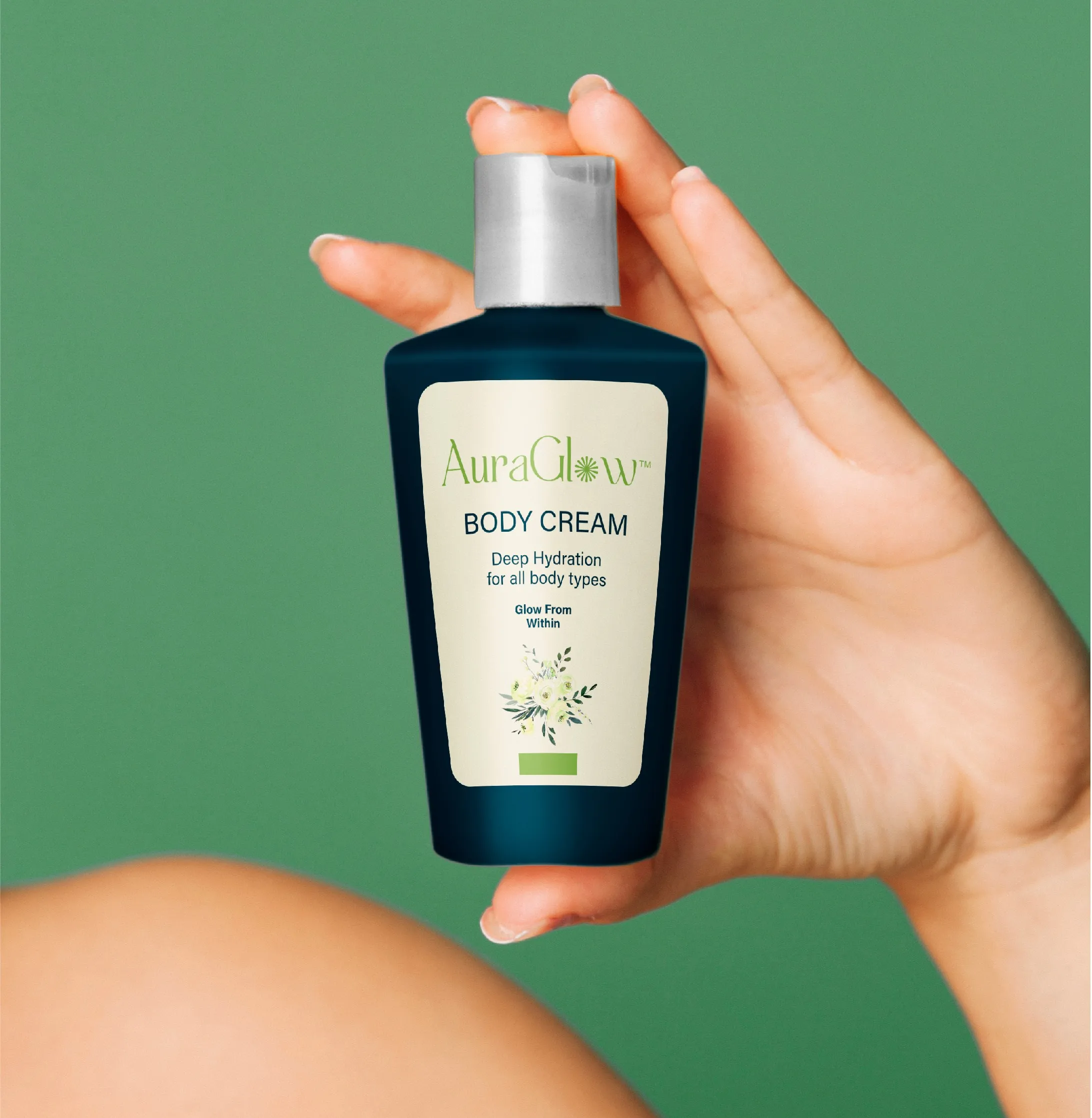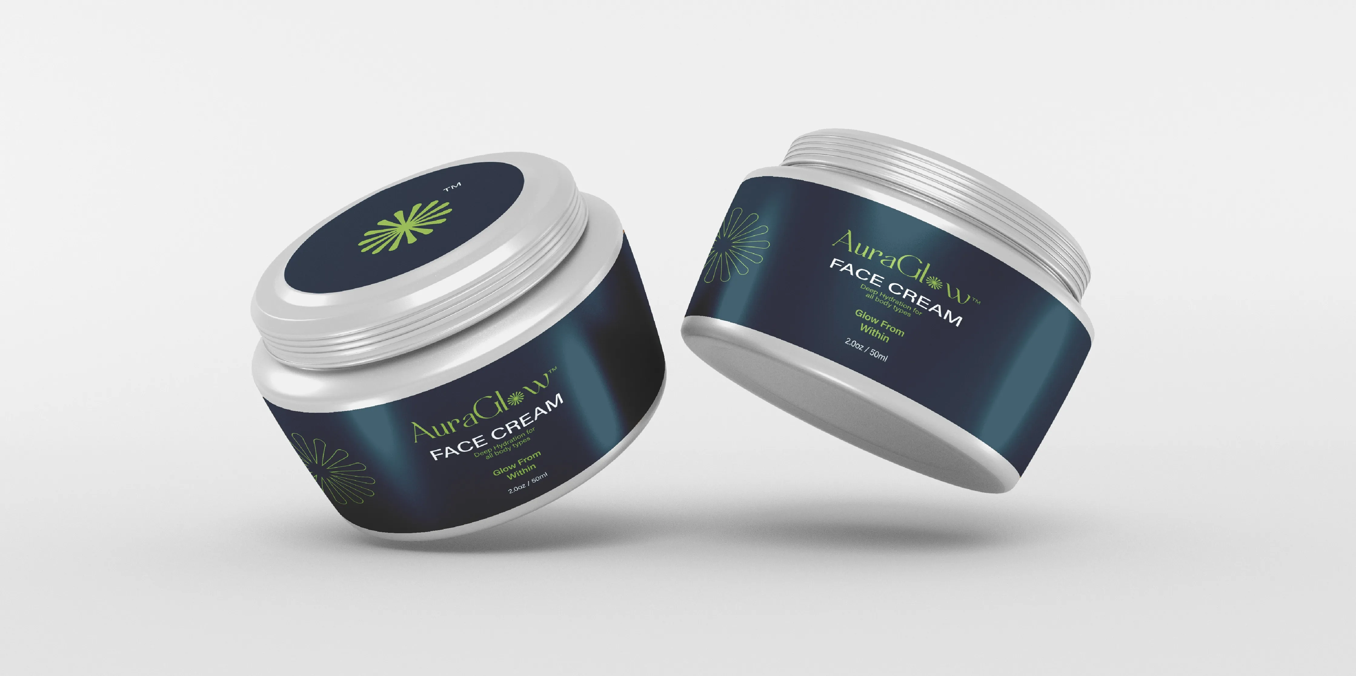 I designed the AuraGlow logo around two elements that work together to tell the brand's story: a custom serif wordmark and a stylized flower icon.