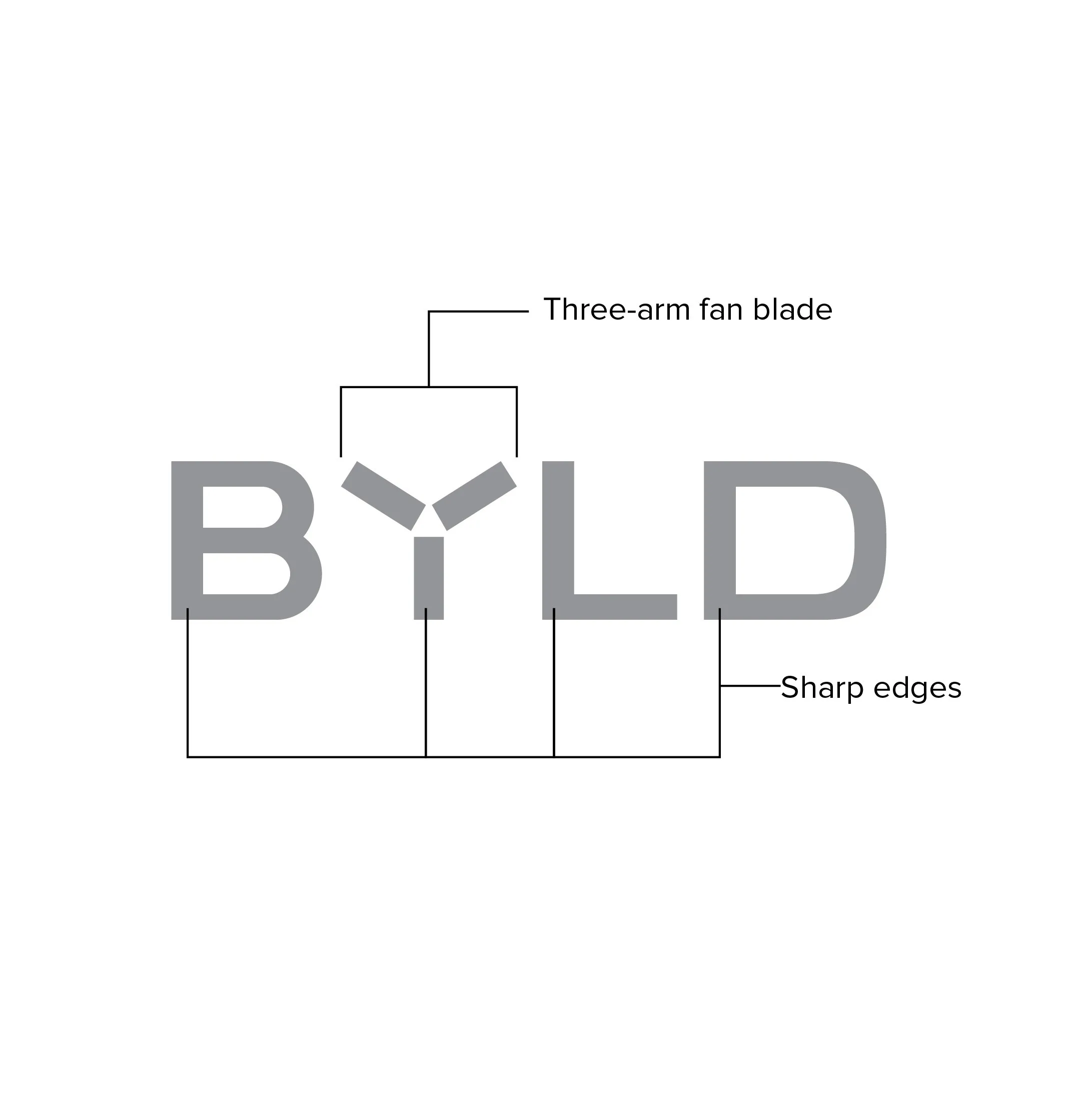 The centerpiece is the redesigned "Y" which I rebuilt as a three arm fan blade, a direct reference to PC cooling systems and the technical craft behind every BYLD build. The symmetry of the arms reinforces the brand's focus on performance and attention to detail.